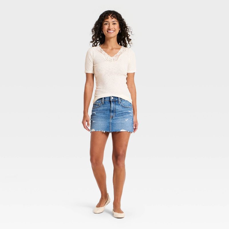Women's Short Sleeve Lace V-Neck T-Shirt - Universal Thread™ Cream M