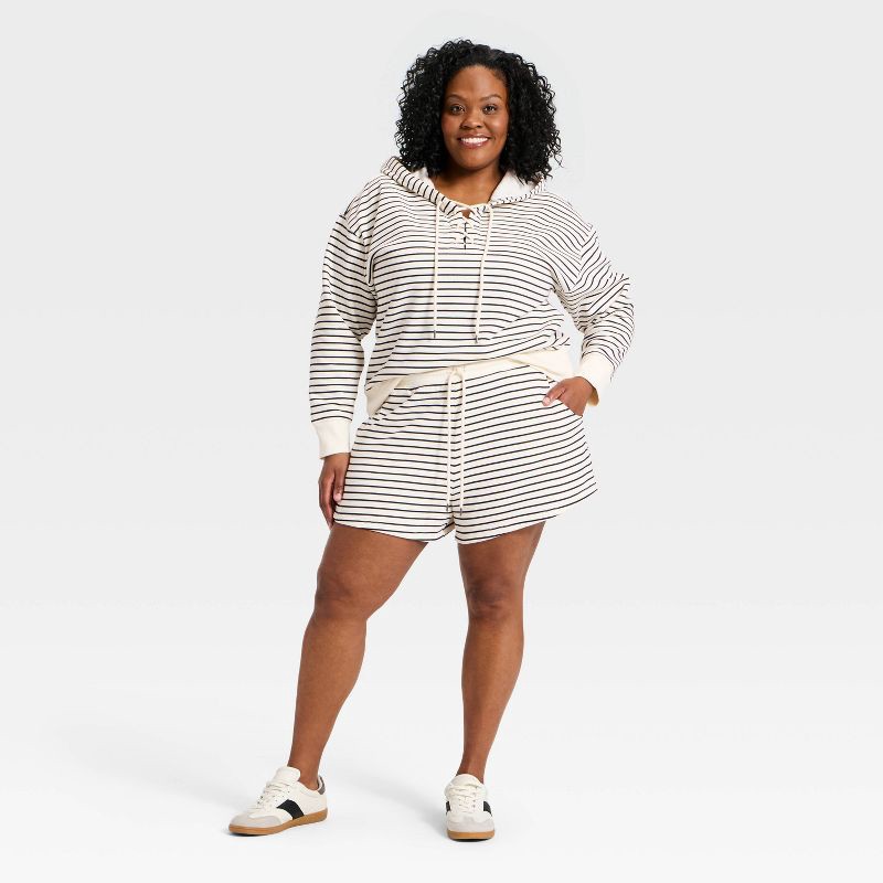 Women's Mid-Rise Fleece Cozy Pull-On Shorts - Universal Thread™ Navy Blue Striped XXL