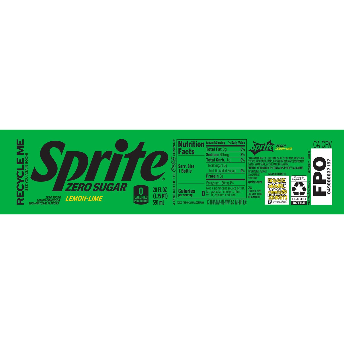 Sprite Zero Sugar Soda Pop Lemon Lime - 20 Fl. Oz.