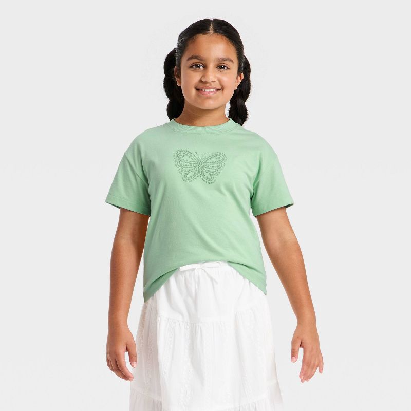 Girls' Short Sleeve Butterfly T-Shirt - Cat & Jack™ Dusty Mint S