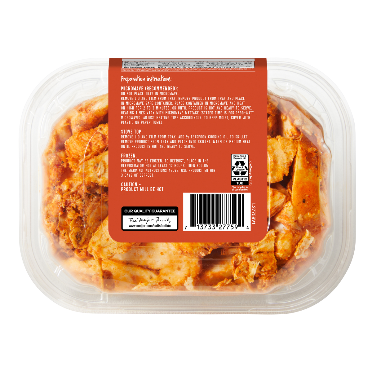 Enjoy the convenience of Fresh From Meijer Chicken Fajita Strips, fully cooked and coated with paprika for a flavorful touch. Ideal for quick meals, these gluten-free strips can be heated in the micro…
