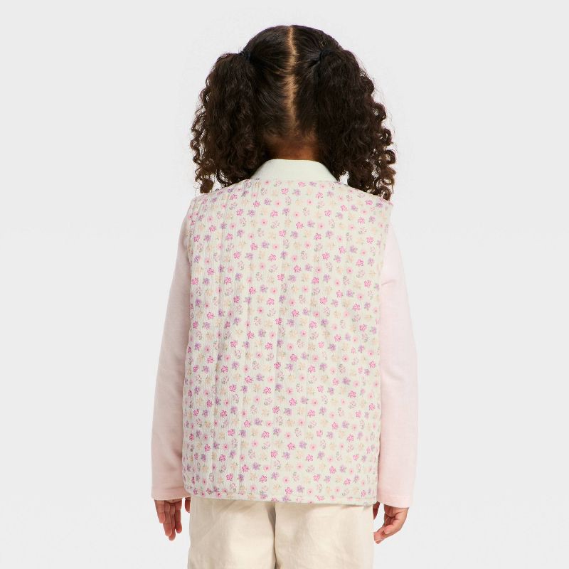 Toddler Girls' Floral Quilted Puffer Vest - Cat & Jack™ Cream 5T