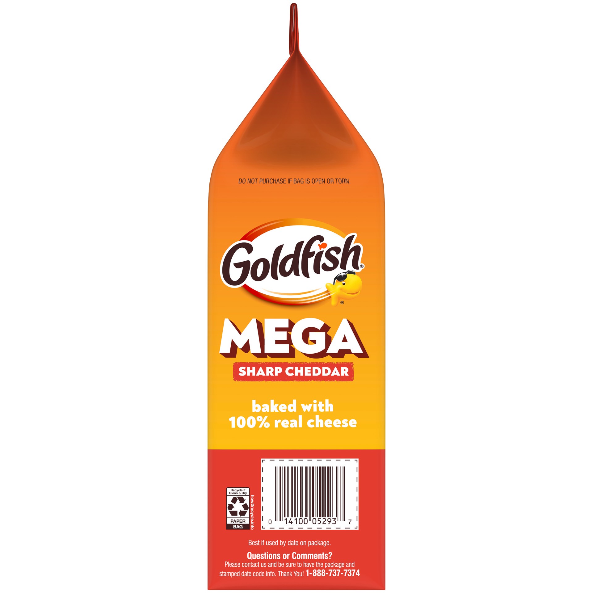 Get ready to enjoy a snack that's mega crispy and mega delicious with Goldfish Mega Bites Sharp Cheddar Crackers! These baked snack crackers are big and crispy and packed with real sharp cheddar chees…