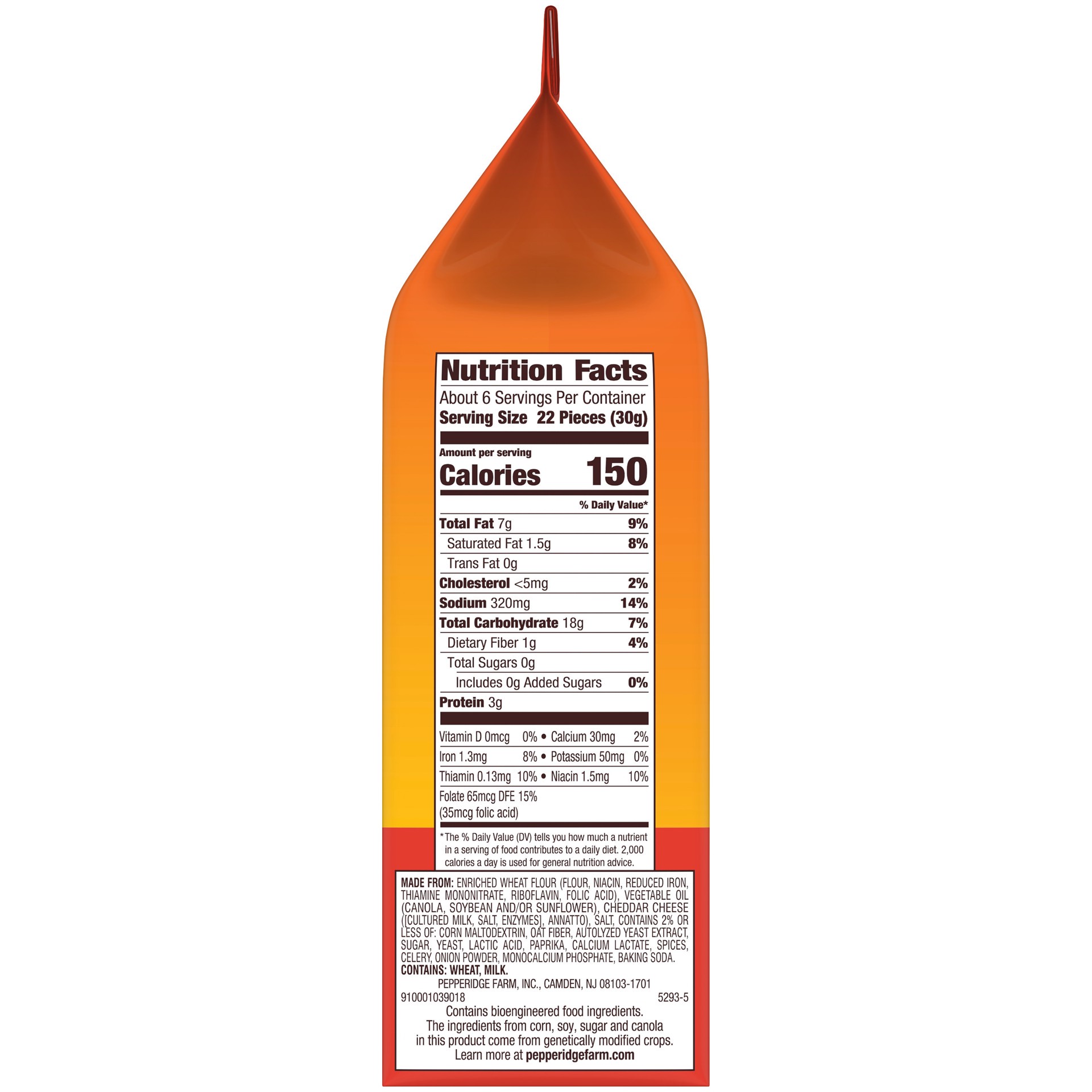 MADE FROM: ENRICHED WHEAT FLOUR (FLOUR, NIACIN, REDUCED IRON, THIAMINE MONONITRATE, RIBOFLAVIN, FOLIC ACID), VEGETABLE OIL (CANOLA, SOYBEAN AND/OR SUNFLOWER), CHEDDAR CHEESE ([CULTURED MILK, SALT, ENZ…