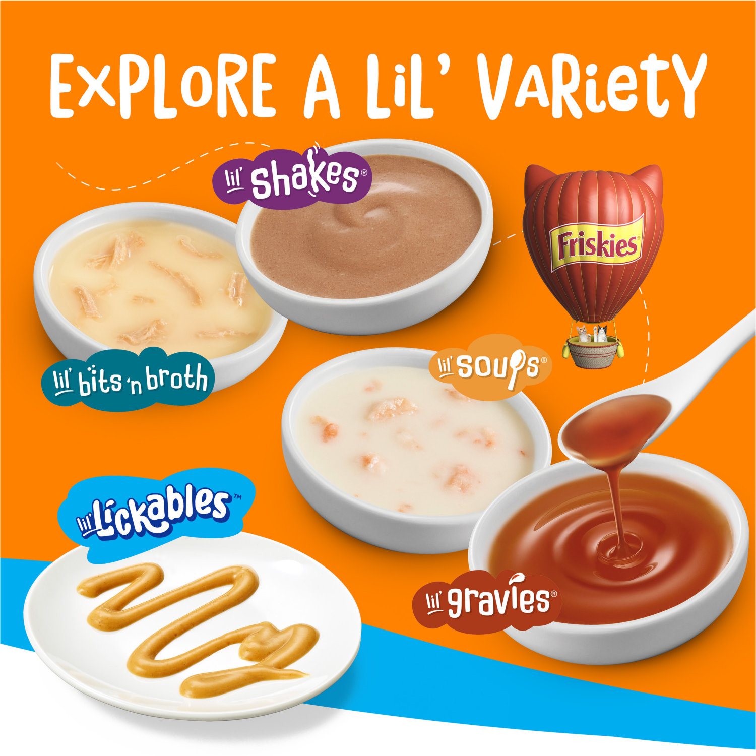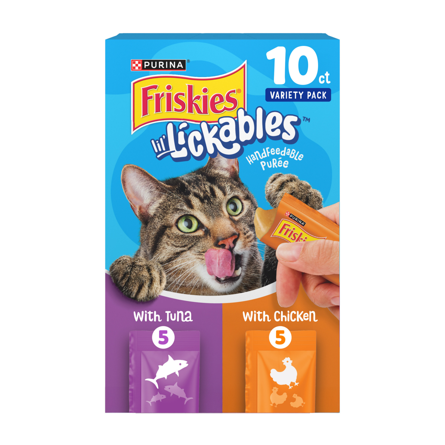 Wow your cat at snack time or mealtime with Purina Friskies lil' Lickables Treats for Cats Variety Pack With Tuna and With Chicken. Made for snack time or to be added to her favorite kibble, these sof…