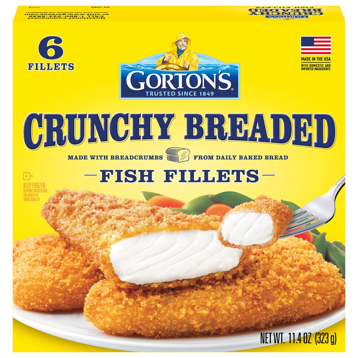 Gorton's Crunchy Breaded Whole Fish Fillets, Wild Caught Fish with Crunchy Panko Breadcrumbs, Frozen, 6 Count, 11.4 oz