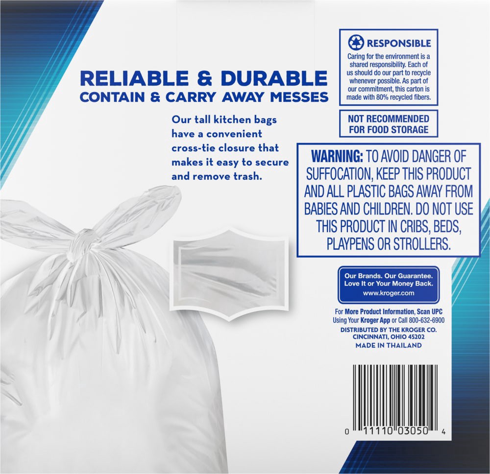 Kroger Tall 13 Gallon Kitchen Cross Tie Bags