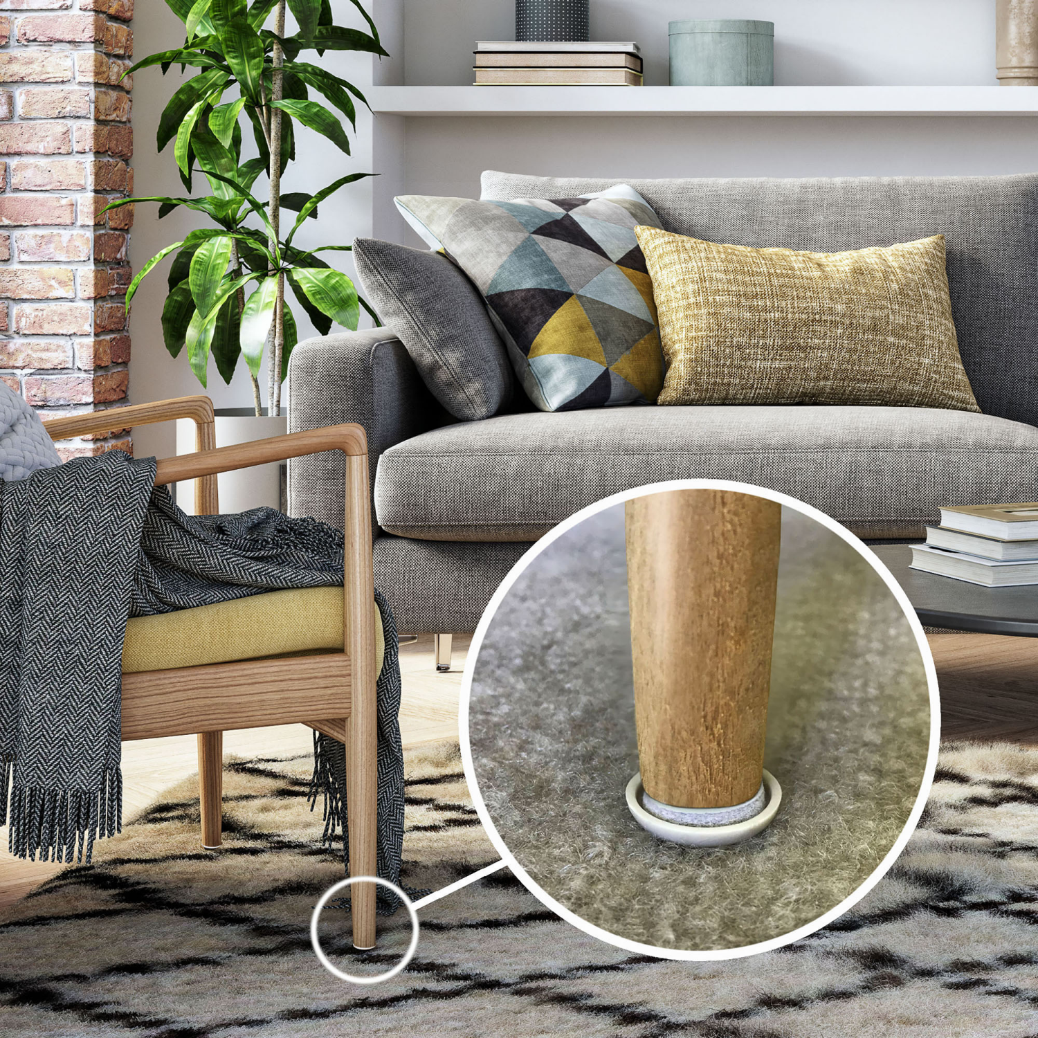 This set is ideal in protecting couches, side chairs, ottomans, accent tables, and a myriad of usages for tabletop décor from lamps to figurines and addresses both easy moving and staying in place.