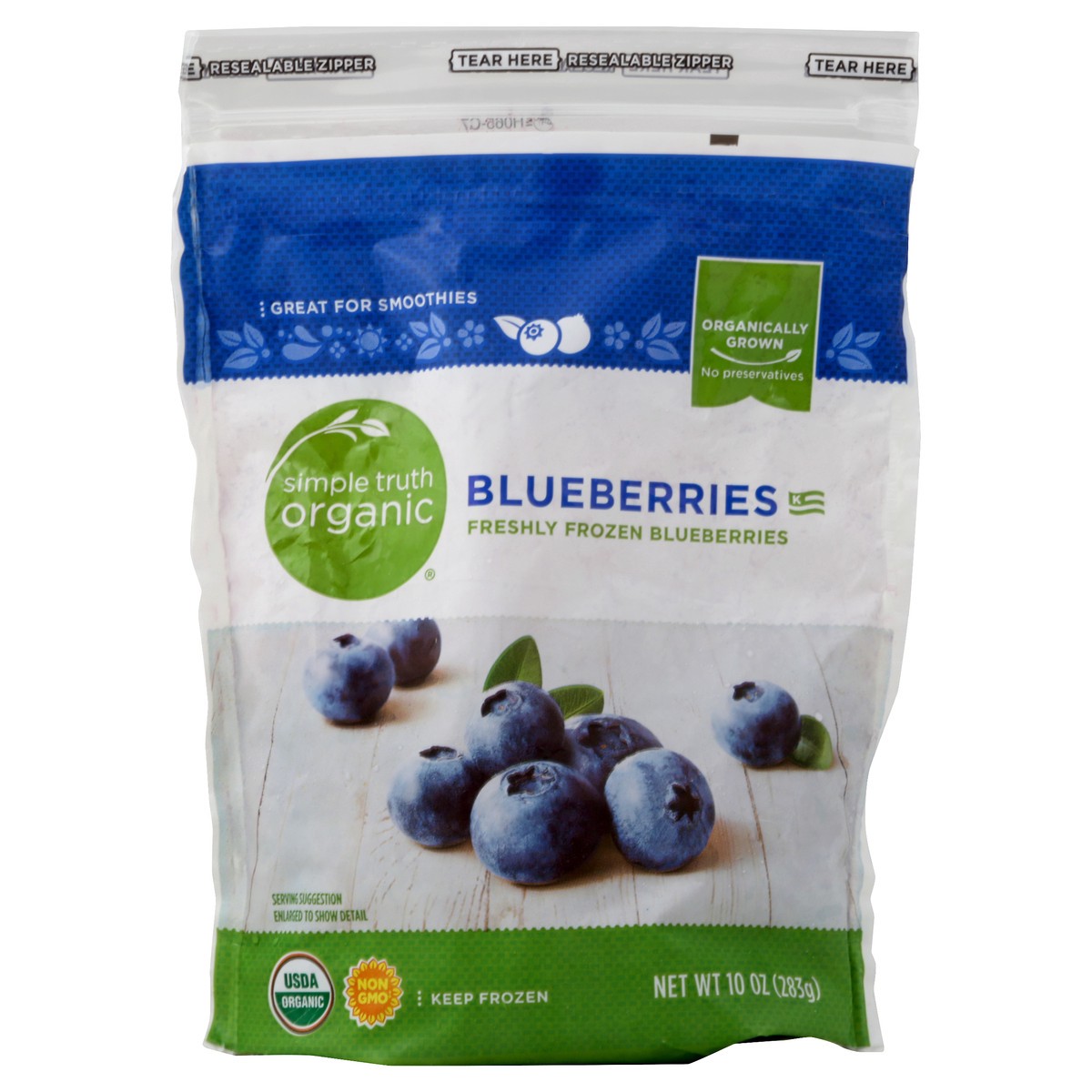 Freshly frozen blueberries. Organically grown. No preservatives. USDA organic. Certified Organic by Oregon Tilth. Non GMO (Simple Truth Organic products are formulated without genetically modified org…