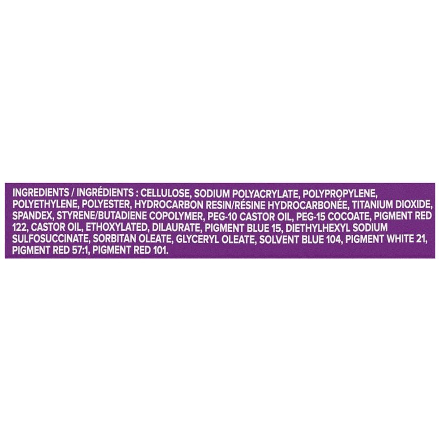 Polypropylene Fibers, Printed with Colorants, Polyethylene and Polypropylene Fibers, Wood Fluff Pulp, Cellulose Tissue, Superabsorbent (Sodium Polyacrylate), Polypropylene/polyethylene Film with Color…