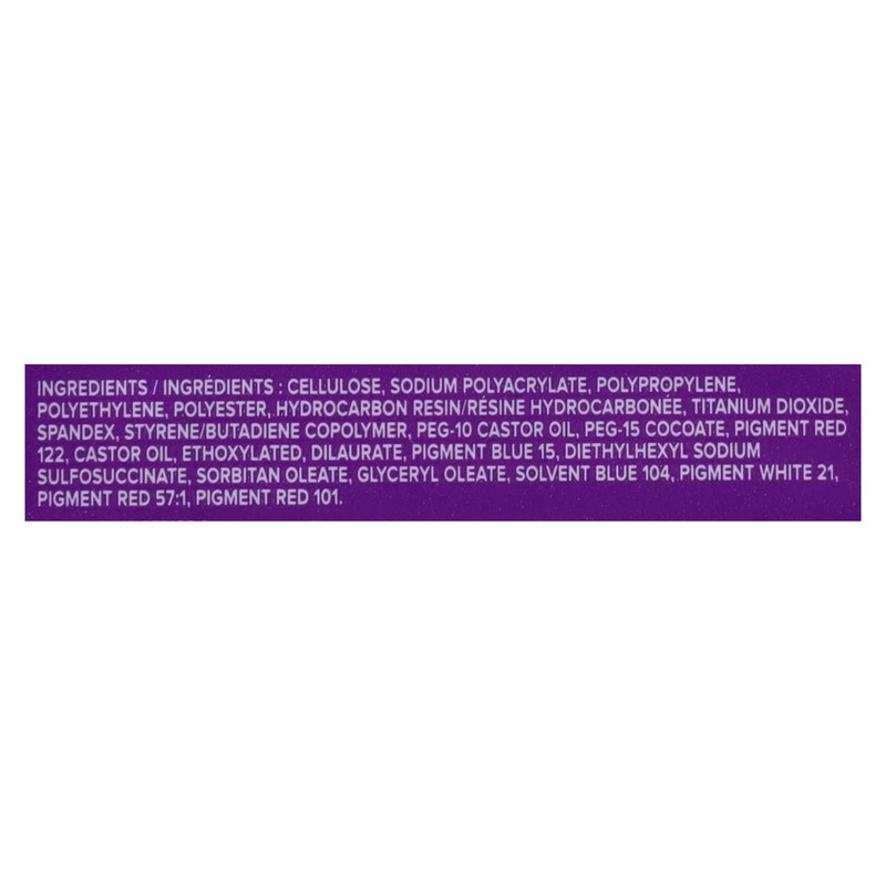 Polypropylene Fibers, Printed with Colorants, Polyethylene and Polypropylene Fibers, Wood Fluff Pulp, Cellulose Tissue, Superabsorbent (Sodium Polyacrylate), Polypropylene/polyethylene Film with Color…
