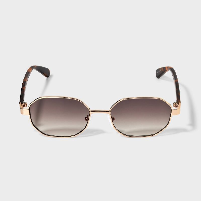 Women's Angular Rectangle Metal with Tortoise Shell Temple Sunglasses - Universal Thread™ Gold
