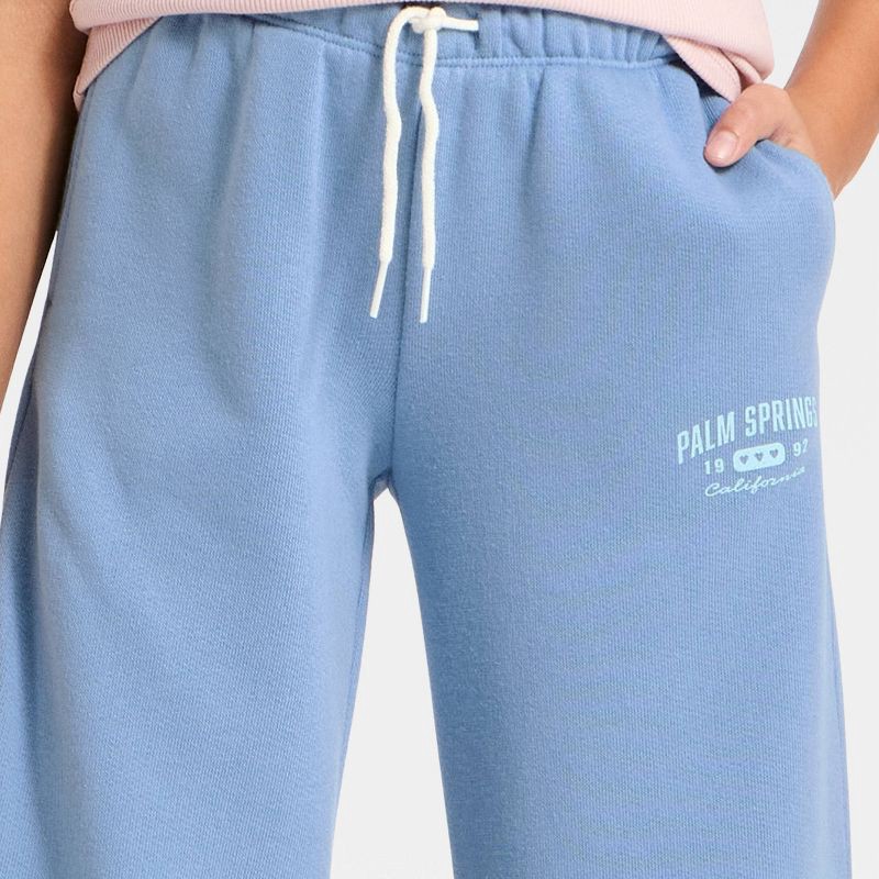 Girls' French Terry 'Palm Springs' Wide Leg Sweatpants - Cat & Jack™ Blue XS