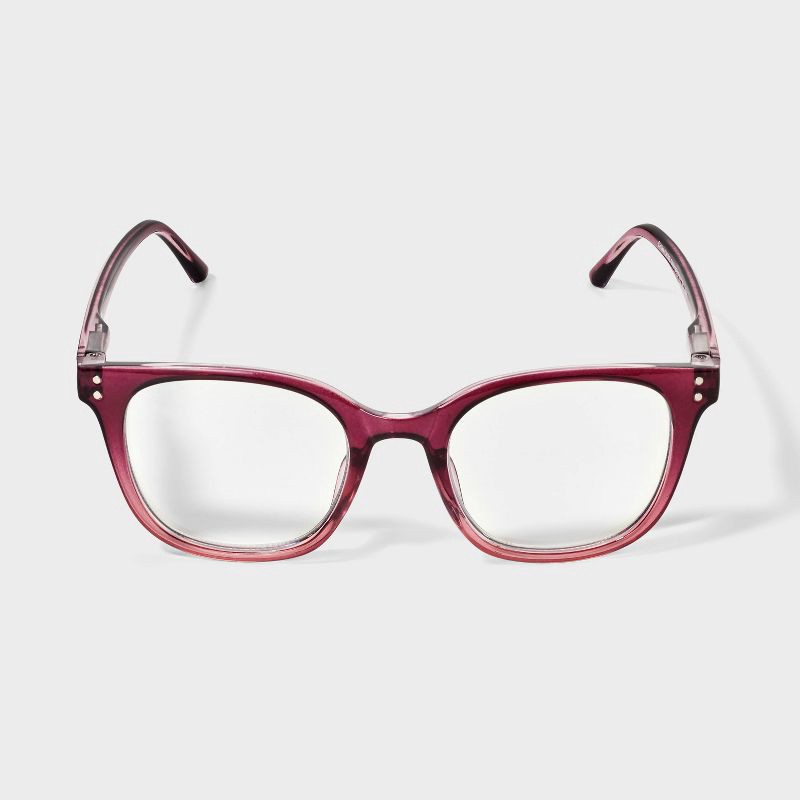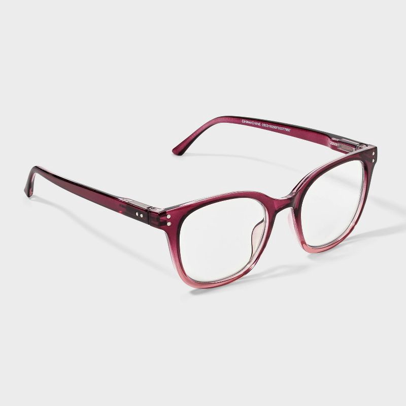 Keep your eyes protected in style with the Shiny Way Blue Light-Filtering Reading Glasses from Universal Thread™. These shiny square glasses feature a lightweight berry-color plastic frame for comfort…