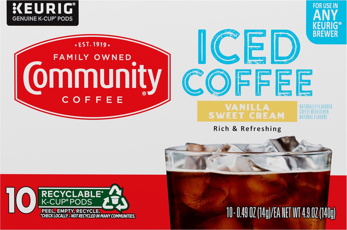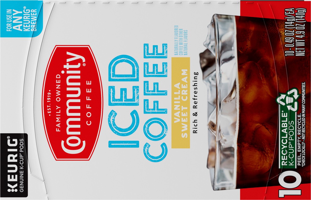 Community Coffee Vanilla Sweet Cream Iced Coffee Keurig K-Cup 10 ct Box