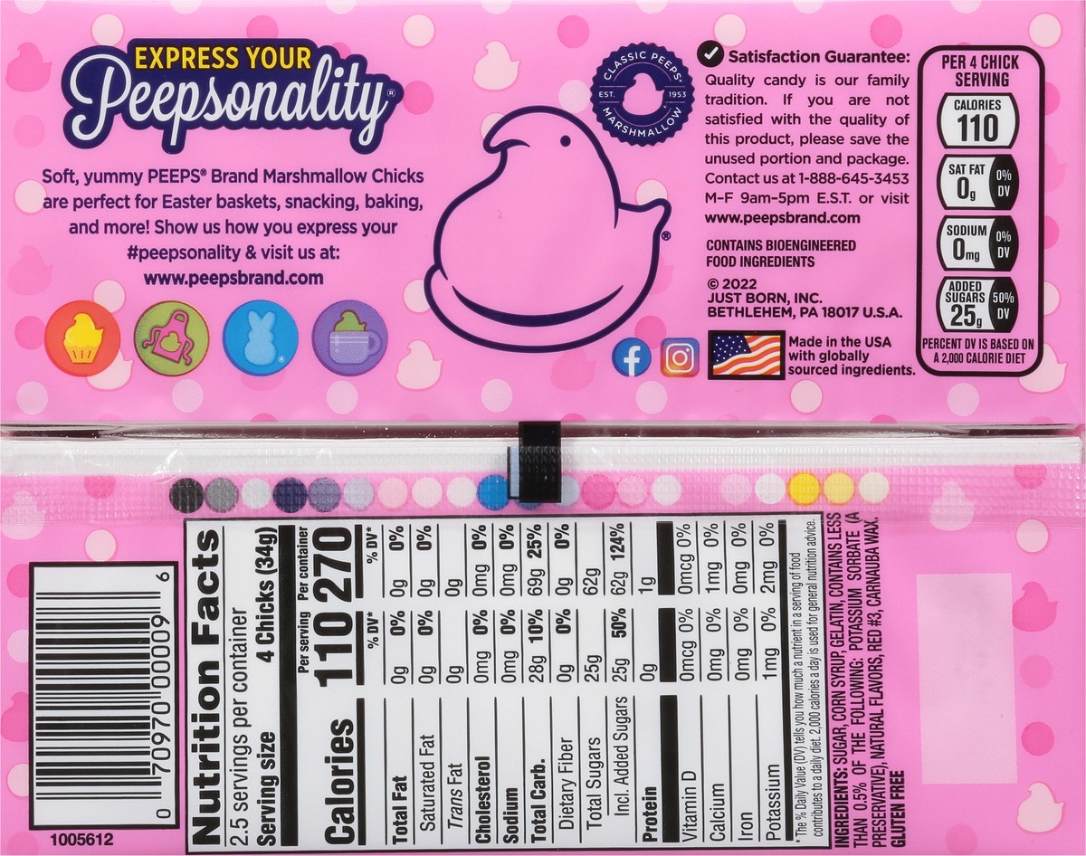 Nothing says "SMILE!" like the marshmallow goodness of PEEPS Chicks. Now you can brighten up any season with these soft and sugary treats. Each pack contains 10 chicks