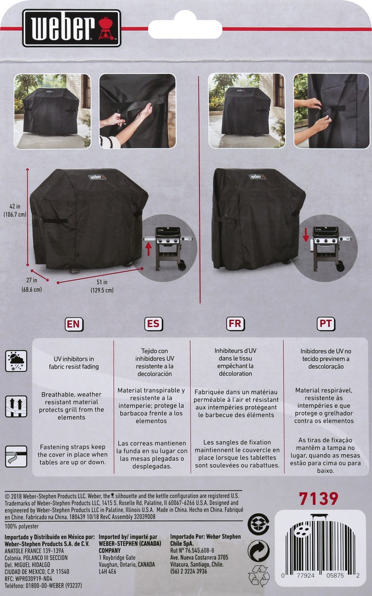 Fits [Spirit II 300, Spirit 300, and Spirit (with side mounted controls) series grills]. 42 in (106.7 cm); 27 in (68.6 cm); 51 in (129.5 cm). UV inhibitors in fabric resist fading. Breathable, weather…