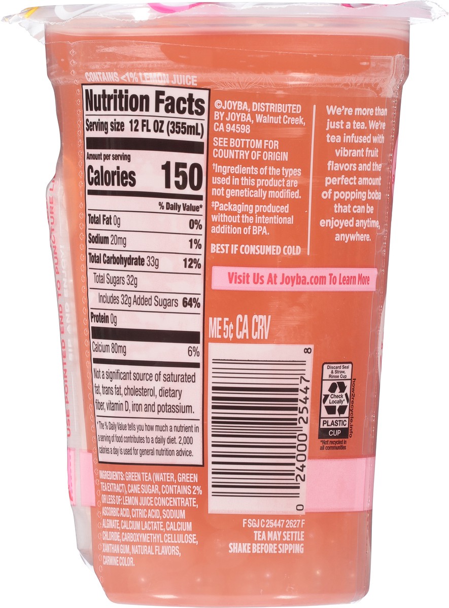Joyba Strawberry Lemonade Green Bubble Tea 12 oz Cup makes it easy to enjoy a Boba Tea shop experience anytime, anywhere! Made with real brewed tea each cup of refreshing Joyba Bubble Tea offers the p…