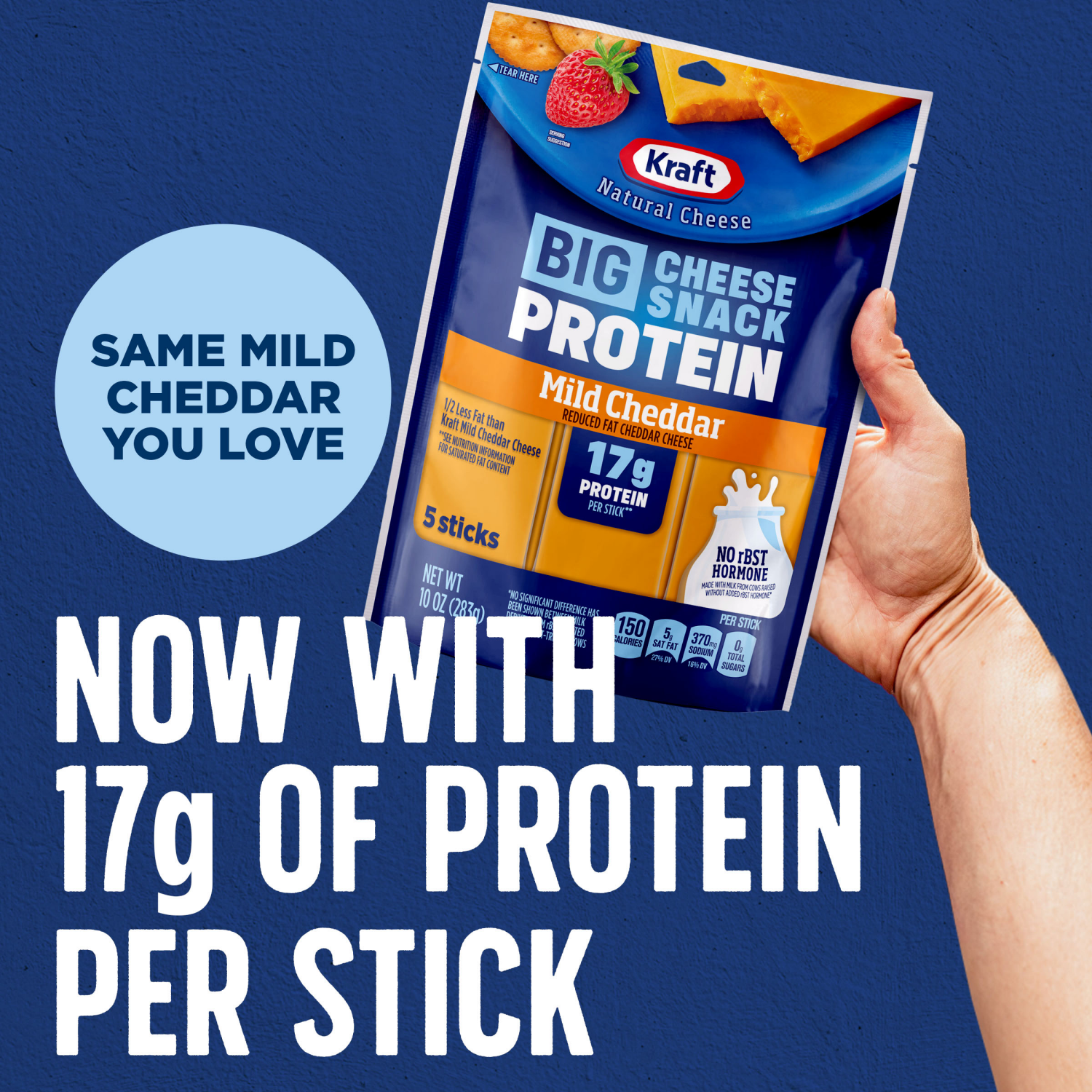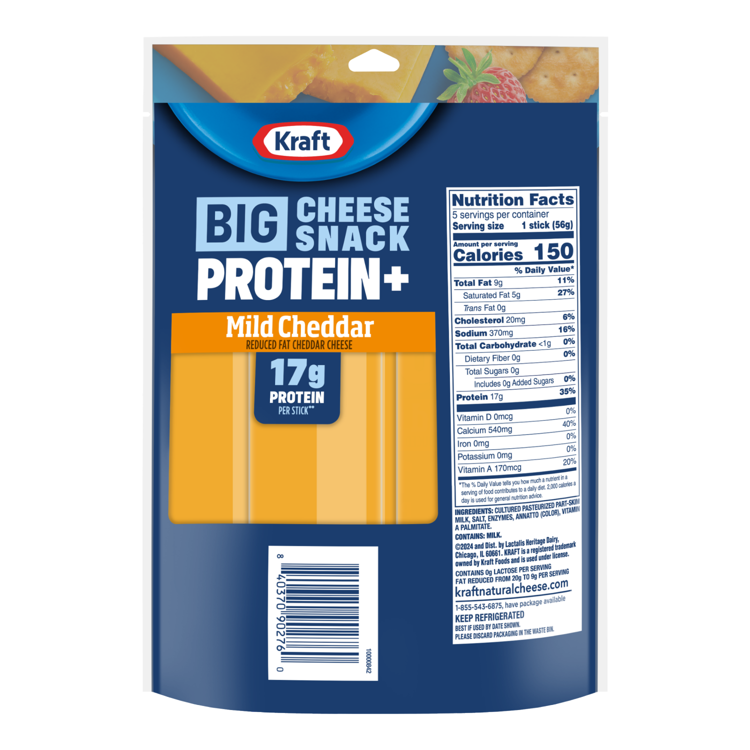 Introducing the Kraft Protein Cheddar Big Cheese Snack, a delicious way to add more protein to your day. Each Big Cheese Snack has 17 g of protein. Just unwrap, eat, and treat yourself to savory, real…