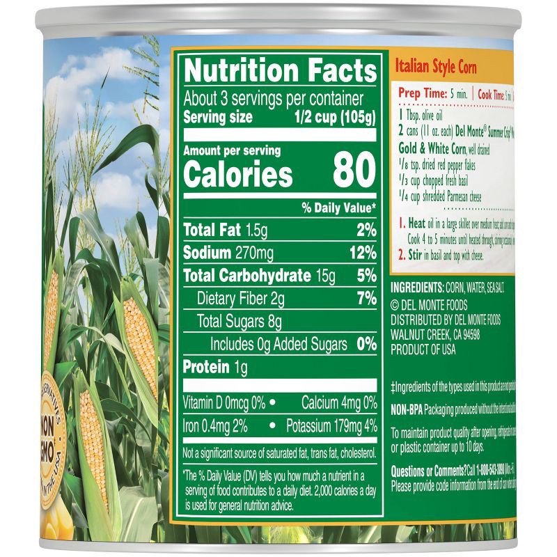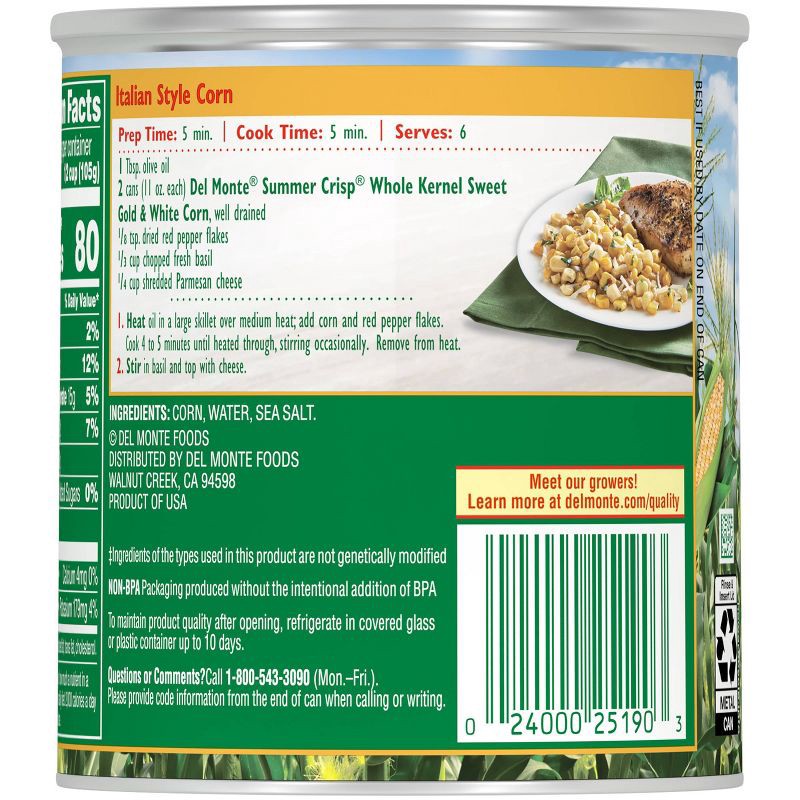 Del Monte® Summer Crisp® Whole Kernel Sweet Gold and White Corn features summer harvest corn, freshly cut and vacuum-packed at the peak of freshness to seal in flavor, texture and nutrition. Our crisp…