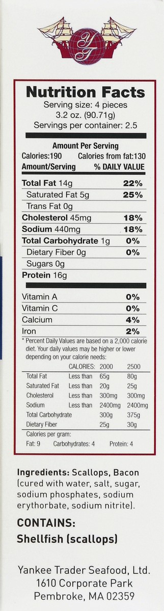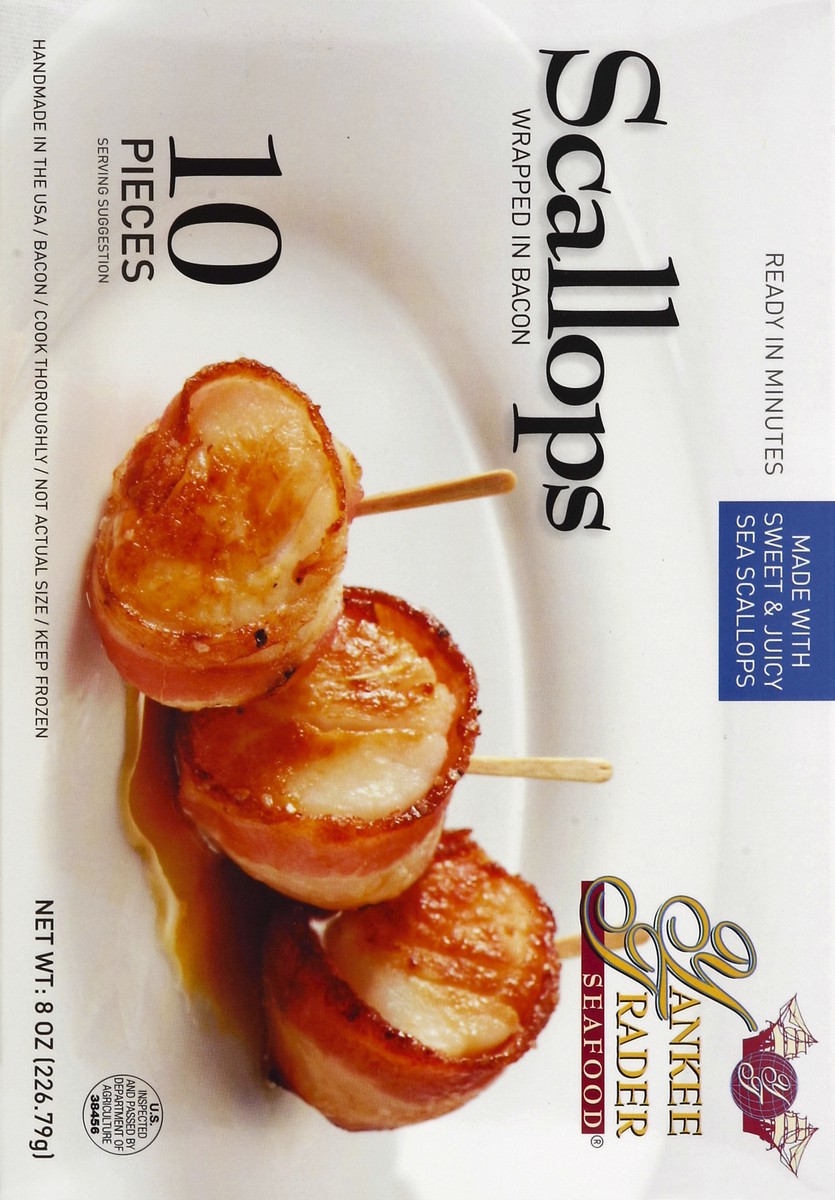 Scallops, Bacon (Cured with Water, Salt, Sugar, Sodium Phosphates, Sodium Erythorbate, Sodium Nitrite).