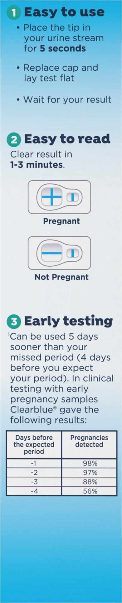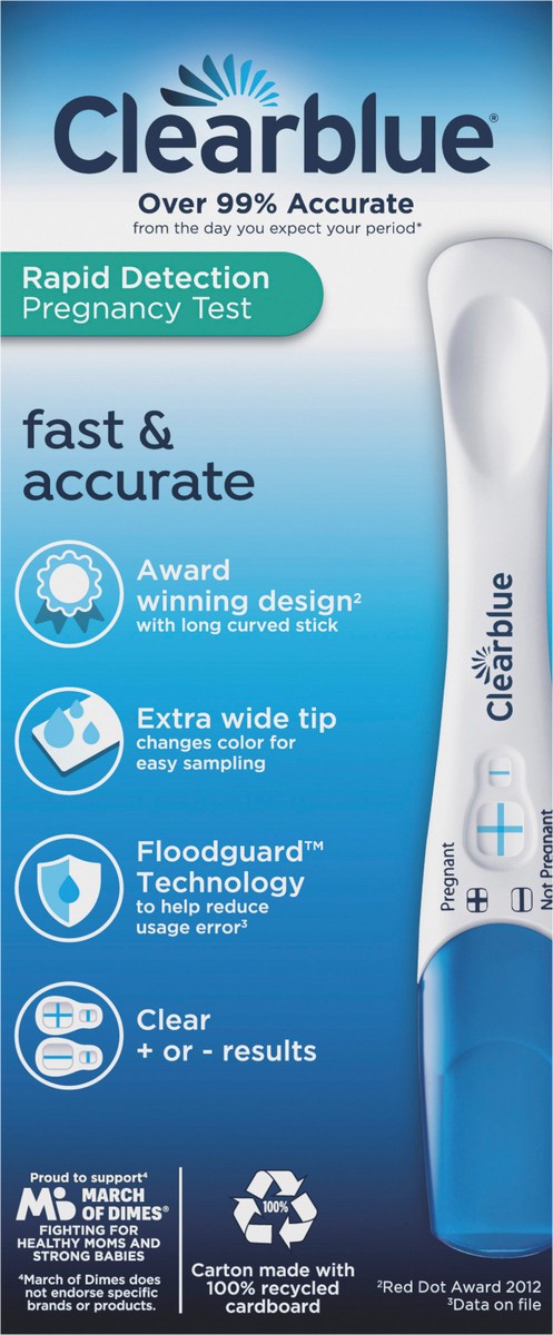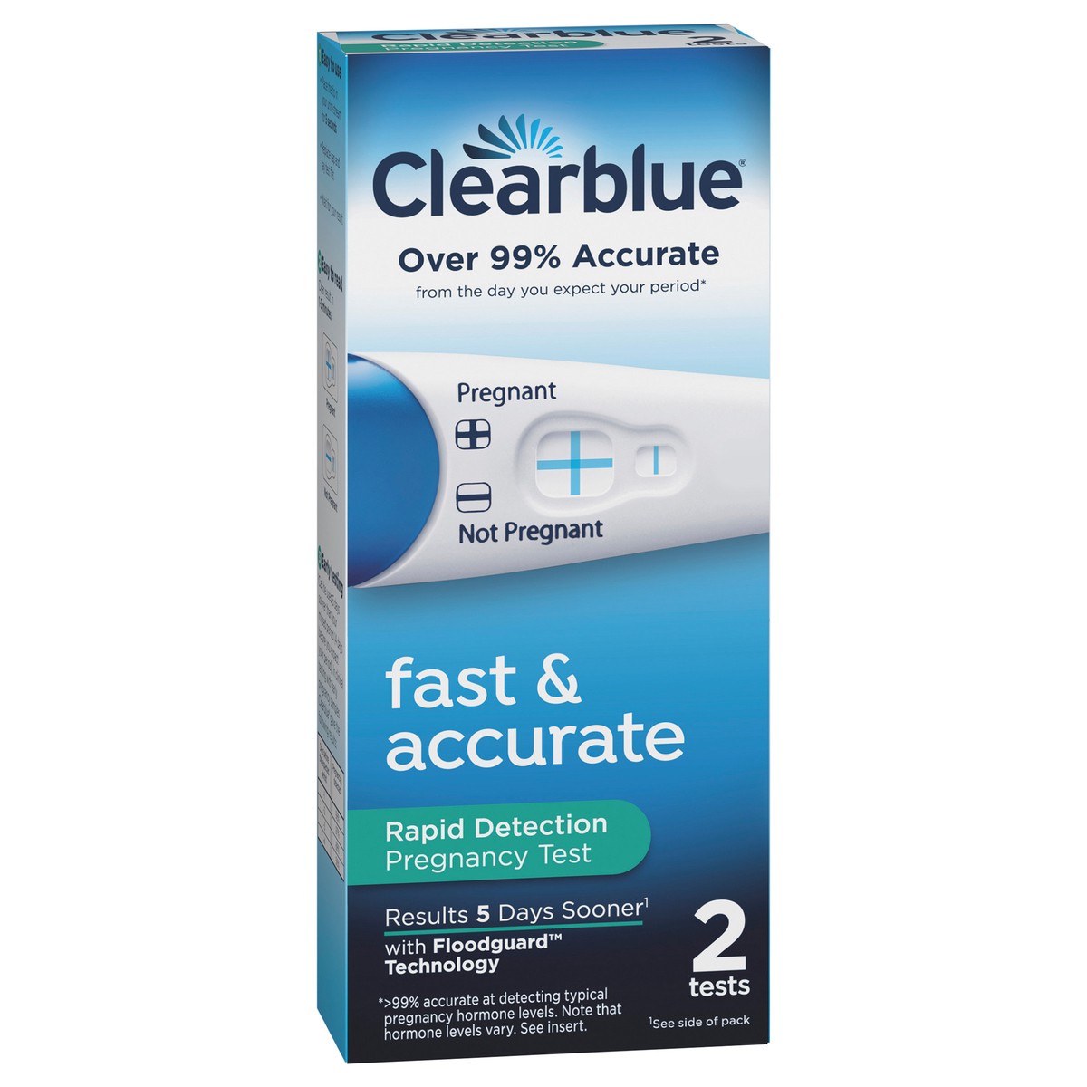 Over 99% accurate from the day of your expected period (99% accurate at detecting typical pregnancy hormones levels. Note that hormone levels may vary. See insert). Fast & accurate. Over 99% accurate …