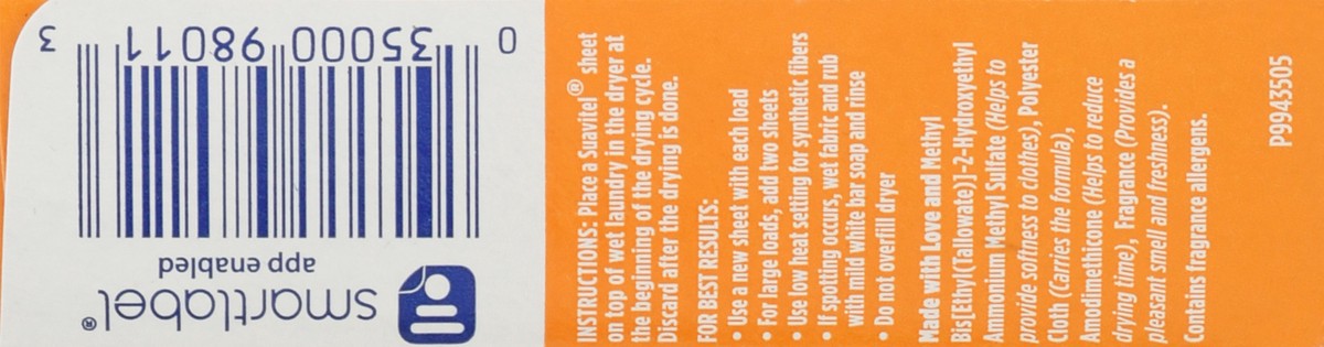 - *Provides Fast Dry benefit vs. Suavitel Regular Dryer Sheets