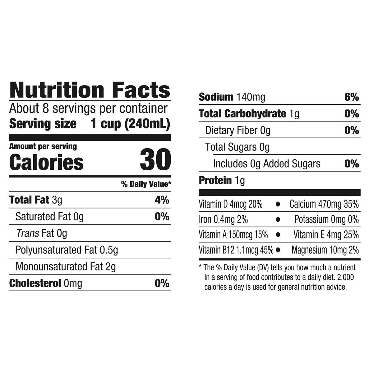 - Just 30 Calories: Unsweetened plant based milk with 0g sugar per serving* tastes great poured over cereal