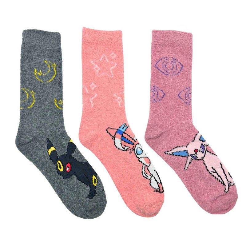 Pokemon Pokémon 3pk Micro Popo Fuzzy Crew Socks - Sylveon, Espeon, Umbreon