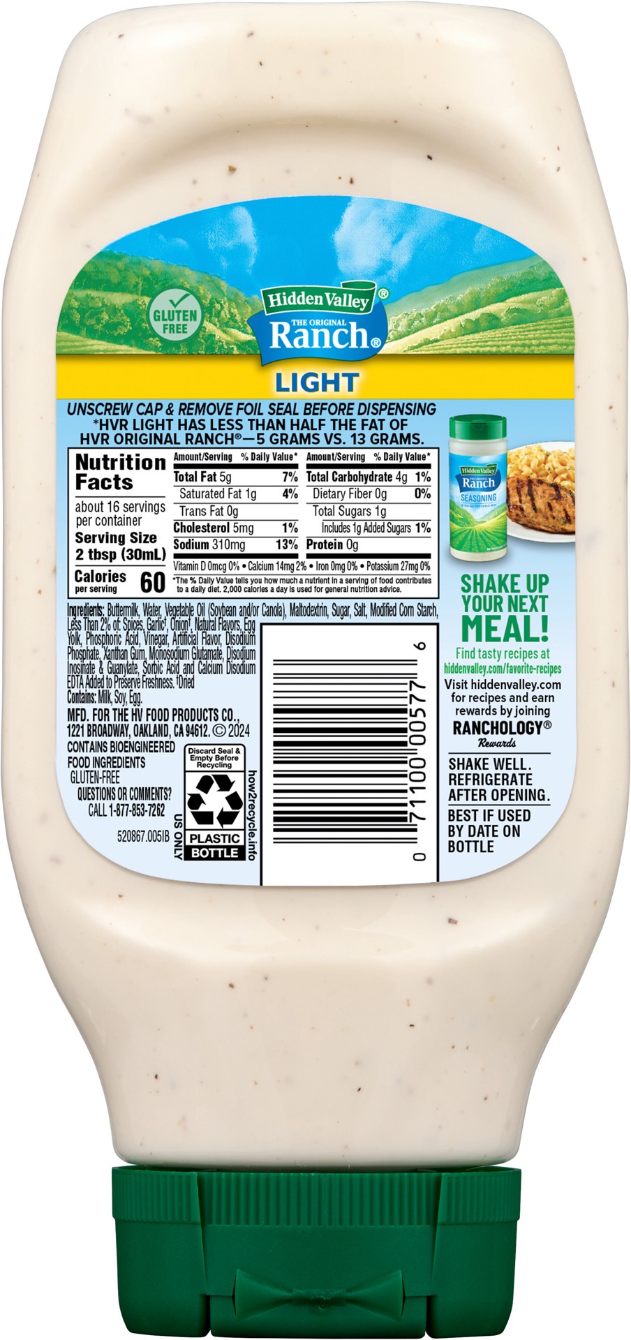 Give every meal more delicious flavor with Hidden Valley Light Ranch Dressing. With 60% less fat than regular Hidden Valley Ranch dressing (1), this thick, creamy dressing is made with buttermilk and …