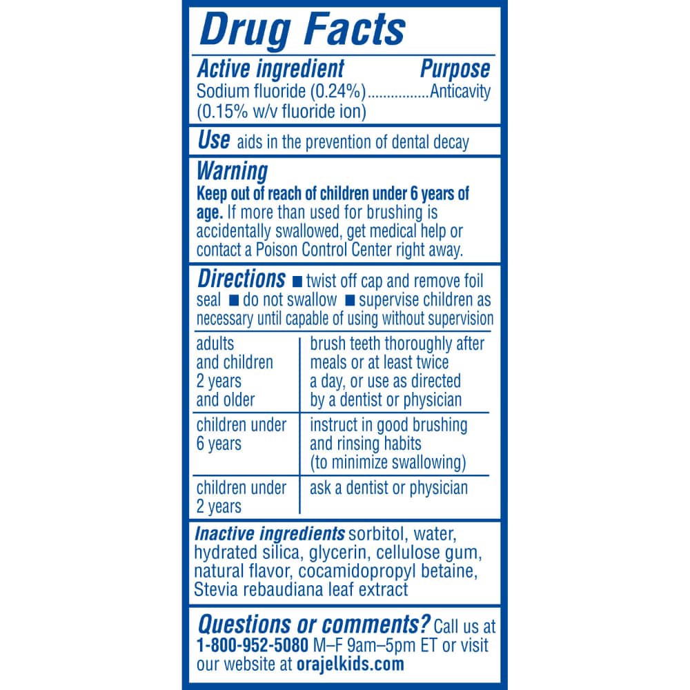 Active Ingredients: Sodium Fluoride (0.15% w/v Fluoride Ion) (0.24 %), Anticavity. Inactive Ingredients: Sorbitol, Water, Hydrated Silica, Glycerin, Cellulose Gum, Natural Flavor, Cocamidopropyl Betai…