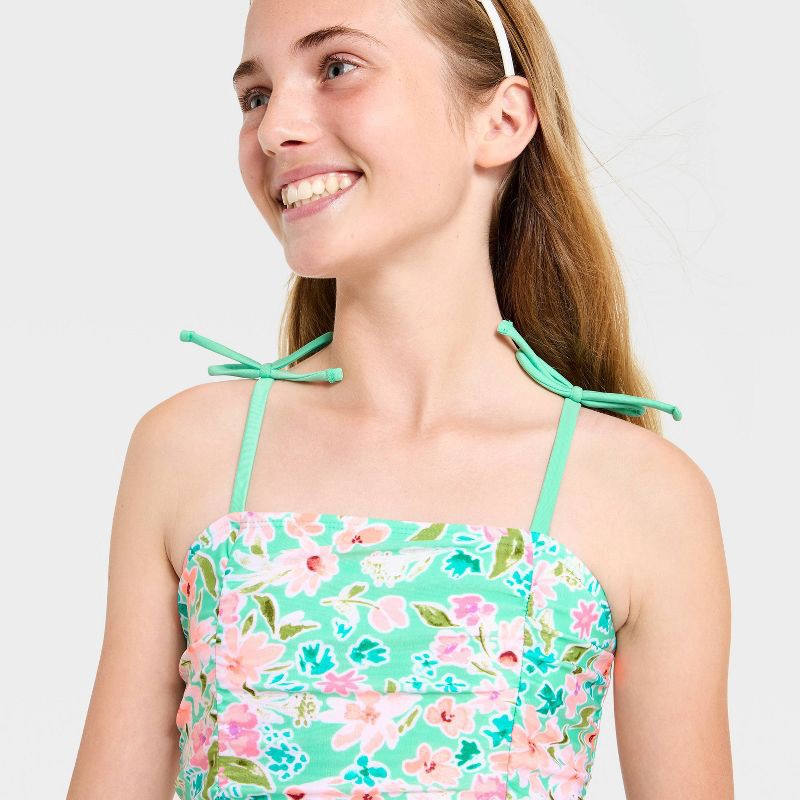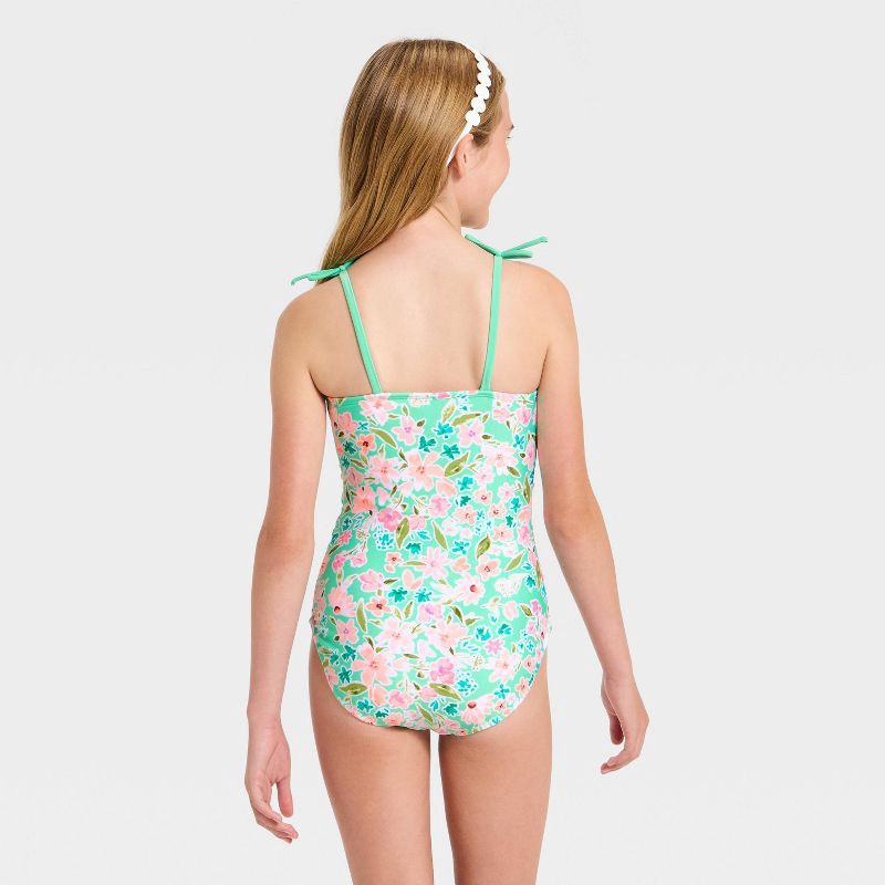 Girls' Whimsical Floral One Piece Swimsuit - Cat & Jack™ Nettle Green L
