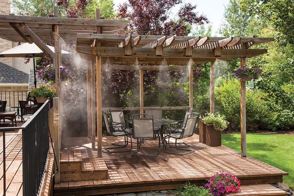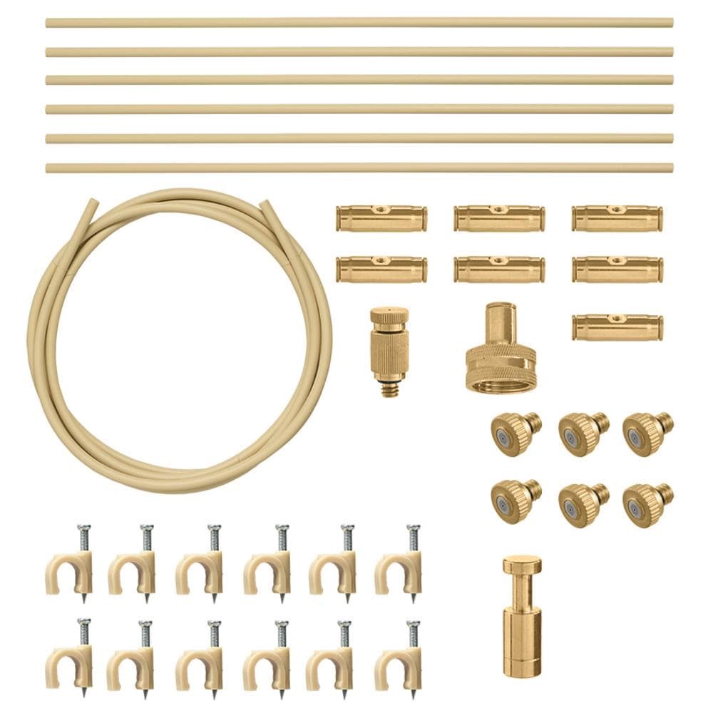 Great for cooling your outdoor living areas. 12 ft of linear mist cooling (24 sq ft of mist area). Expandable up to 62 nozzles (another 124 ') with appropriate pressure. No gluing or special tools req…