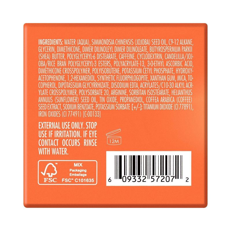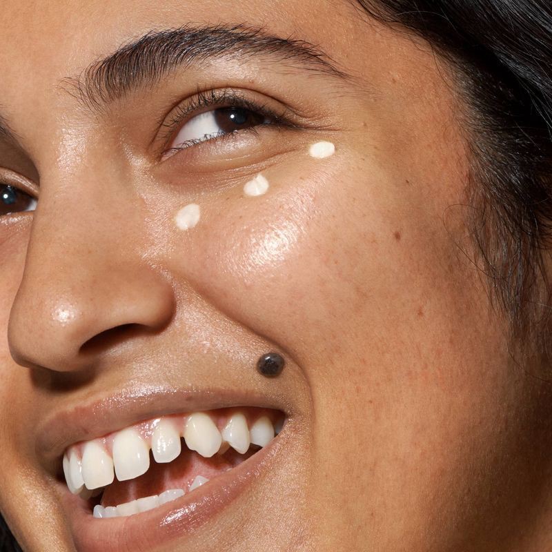 - Under-eye brightening cream enriched with vitamin C, banana-colored powder, and a 3% caffeine blend to help revive tired-looking eyes