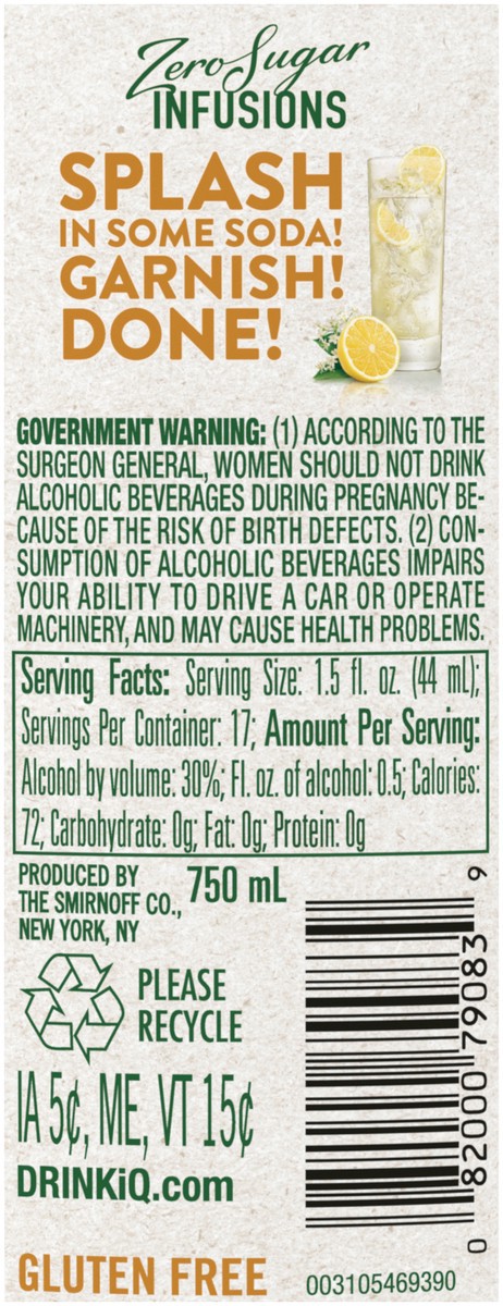 Enjoy the perfectly balanced flavor of Smirnoff Zero Sugar Infusions Lemon & Elderflower, made with zero sugar and no artificial flavors for a refreshing tasting drink. This 60 proof vodka specialty f…