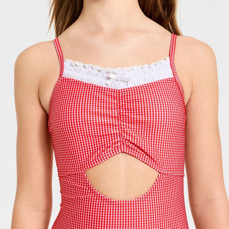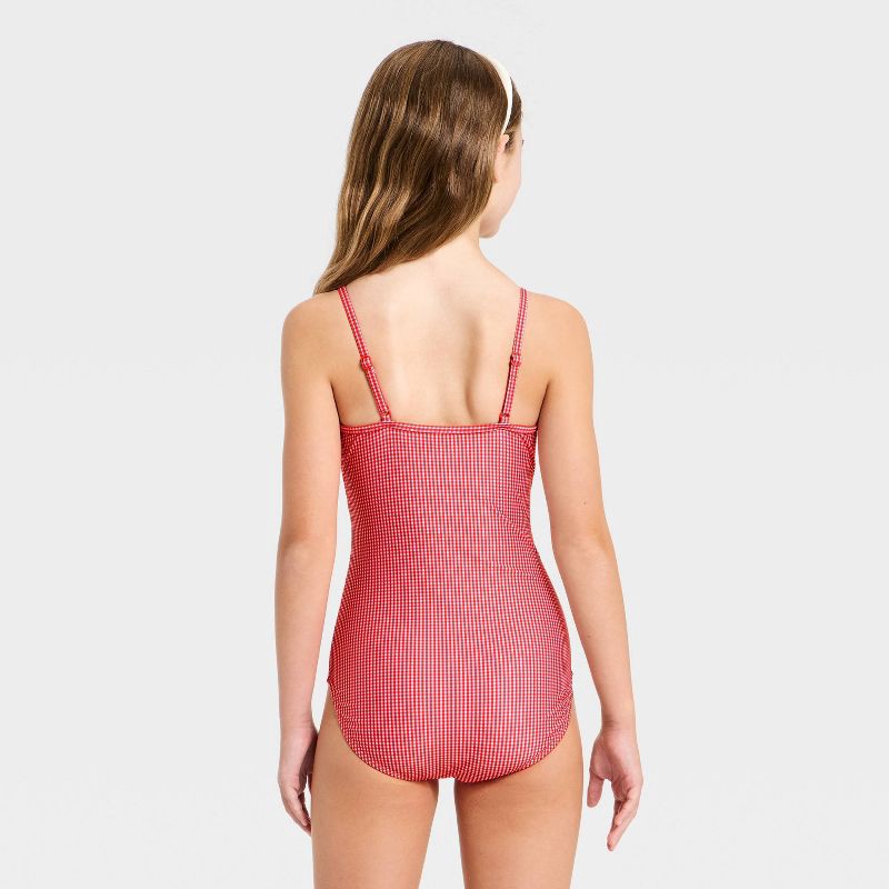 Girls' Mini Gingham One Piece Swimsuit - art Class™ Red XL