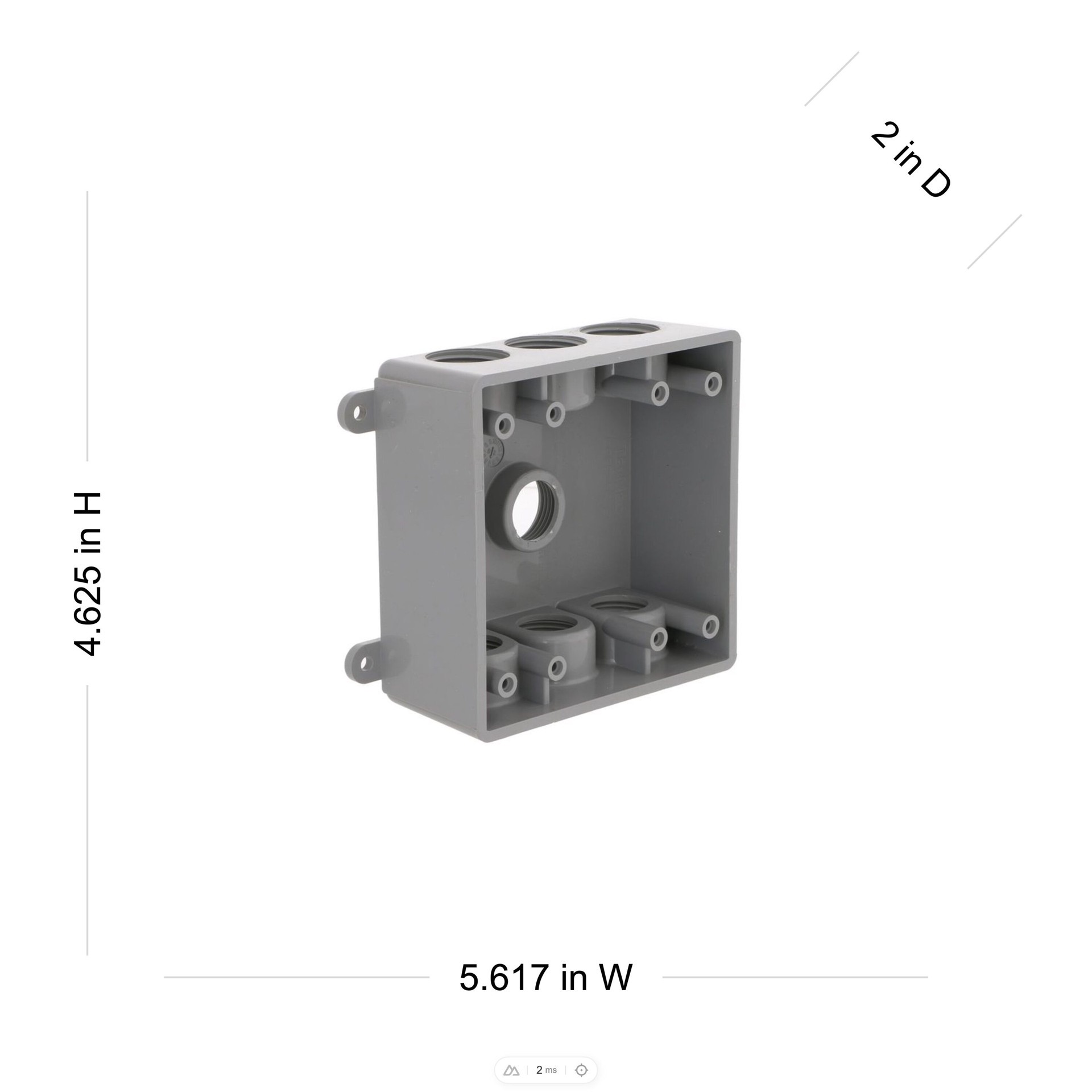 Durable high-impact PVC construction. Seven threaded outlets that fits either 1/2 in or 3/4 conduit. 2 in deep. 26.5 cu in capacity. Includes 3/4 in closure plugs and reducer bushings. Recommend using…