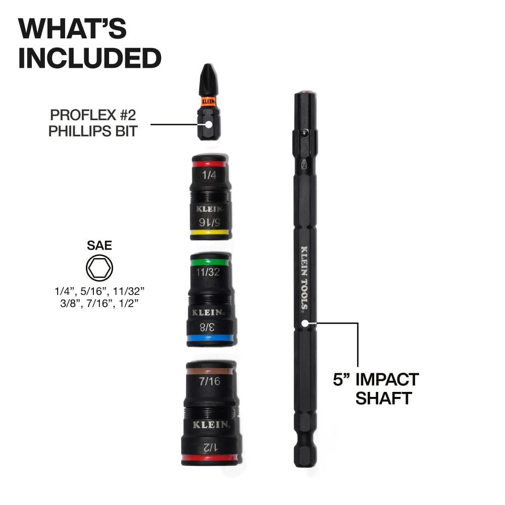 7-in-1 Impact Flip Socket Set includes 1/4, 5/16, 11/32, 3/8, 7/16, 1/2-Inch nut driver sizes, and Proflex Phillips #2 Bit. Features 1/4-Inch Quick-Connect adapter for easy use with an impact driver. …