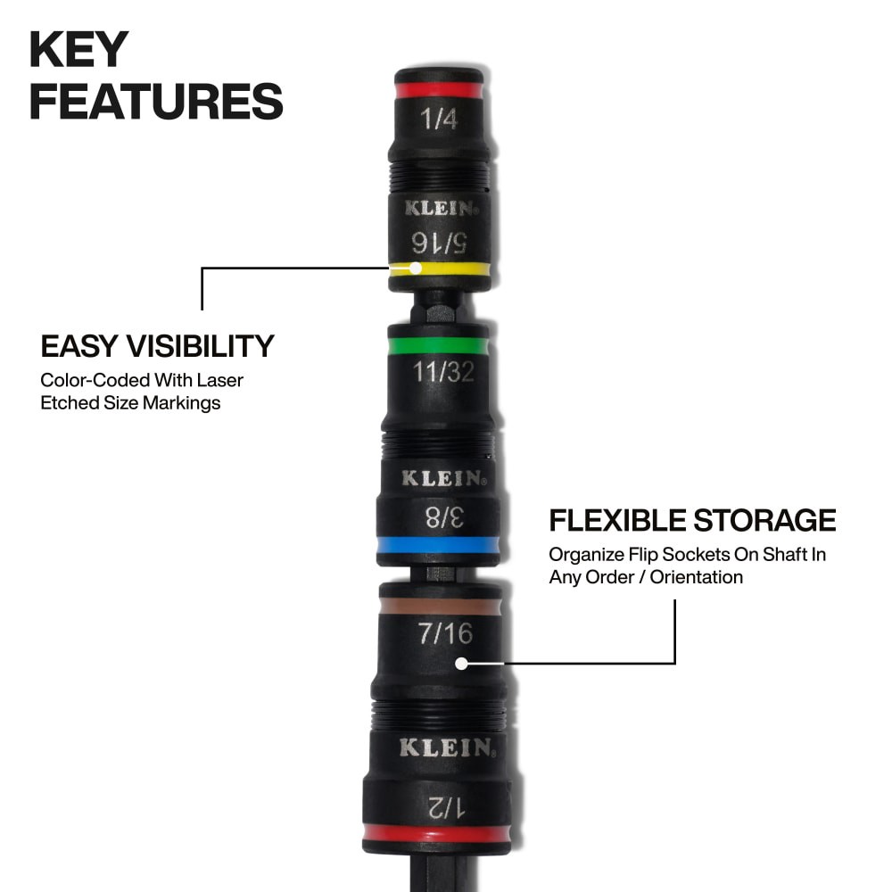 Klein Tools 7-in-1 Impact Flip Socket Set and Phillips #2 Bit