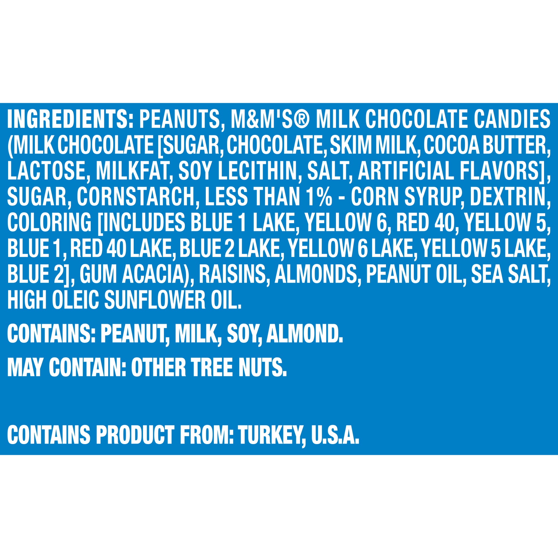 Peanuts, M&M’s Milk Chocolate Candies (Milk Chocolate [Sugar, Chocolate, Skim Milk, Cocoa Butter, Lactose, Milkfat, Soy Lecithin, Salt, Artificial Flavors], Sugar, Cornstarch, Less than 1% - Corn Syru…