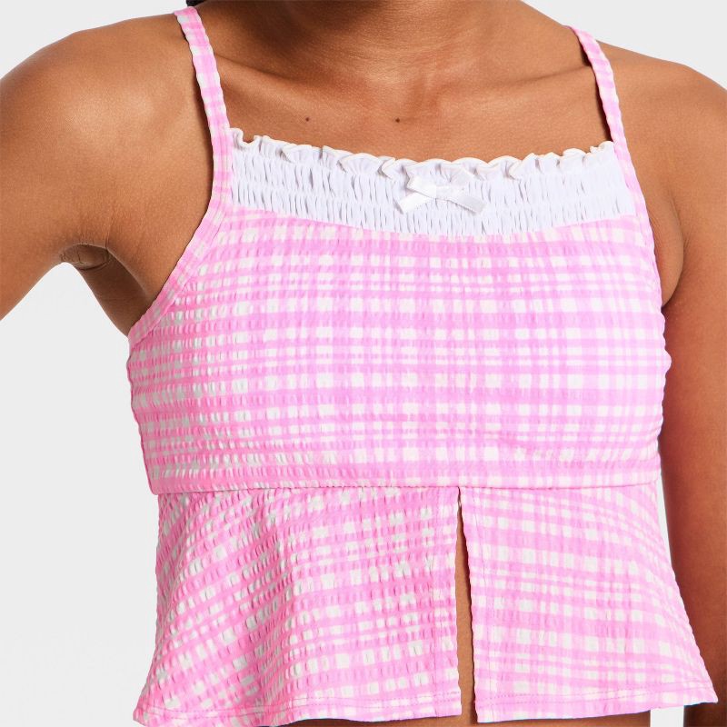 Give your kid's swim closet a total refresh with the Picnic Prep Bikini Set from art class™. The swim set includes a checkered bikini top with bow-tie smocked detailing on the neckline and peplum hem …