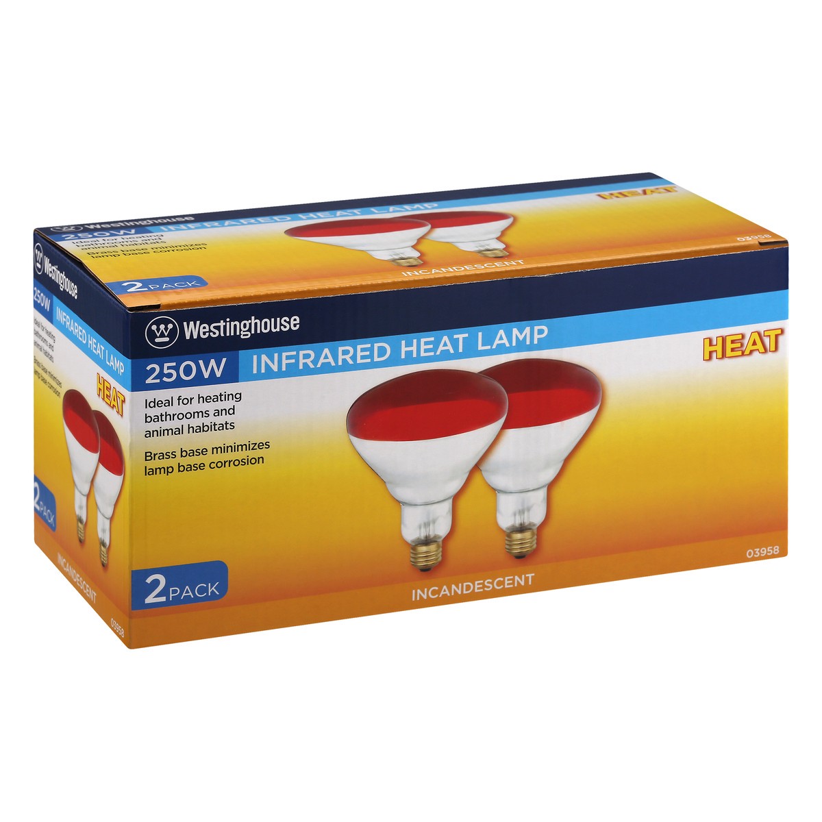 Ideal for heating bathrooms and animal habitats. Brass based minimizes lamp base corrosion. 120V. Medium base (E26). R40. 4.5 year life (based on 3 hrs/day). Infrared Heat Lamps are designed for use i…