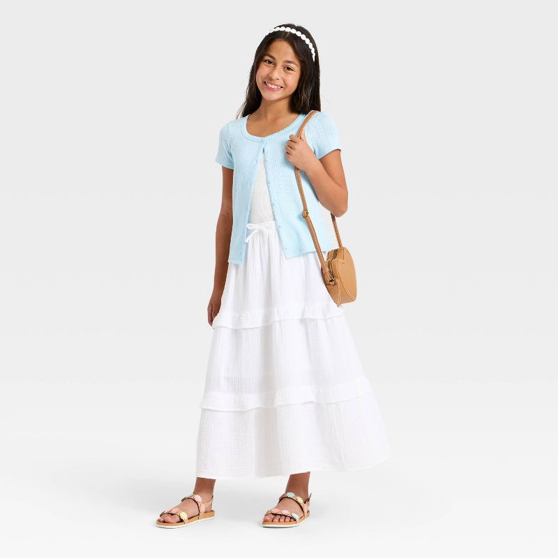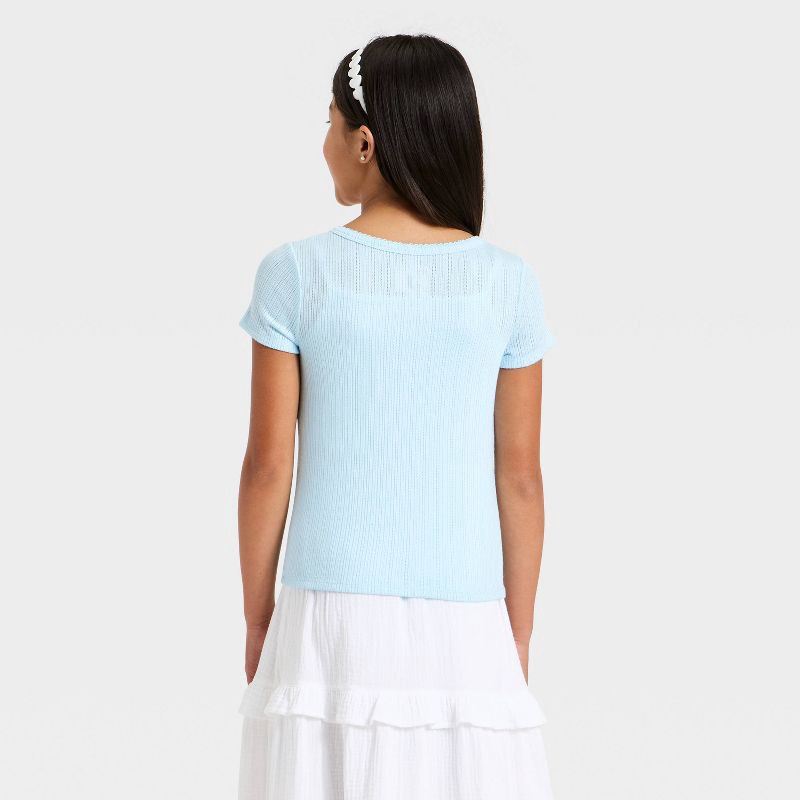 Elevate their everyday looks with this Short-Sleeve Button Ribbed T-Shirt from Cat & Jack™. This pointelle ribbed T-shirt is crafted from a midweight rayon-polyester-nylon-spandex blend for all-day co…