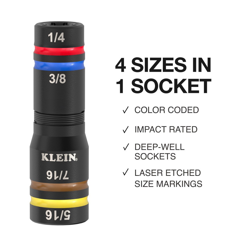 Klein Tools Quad-8 Deep-Well Heavy-Duty Impact Flip Sockets, SAE, 3-Piece