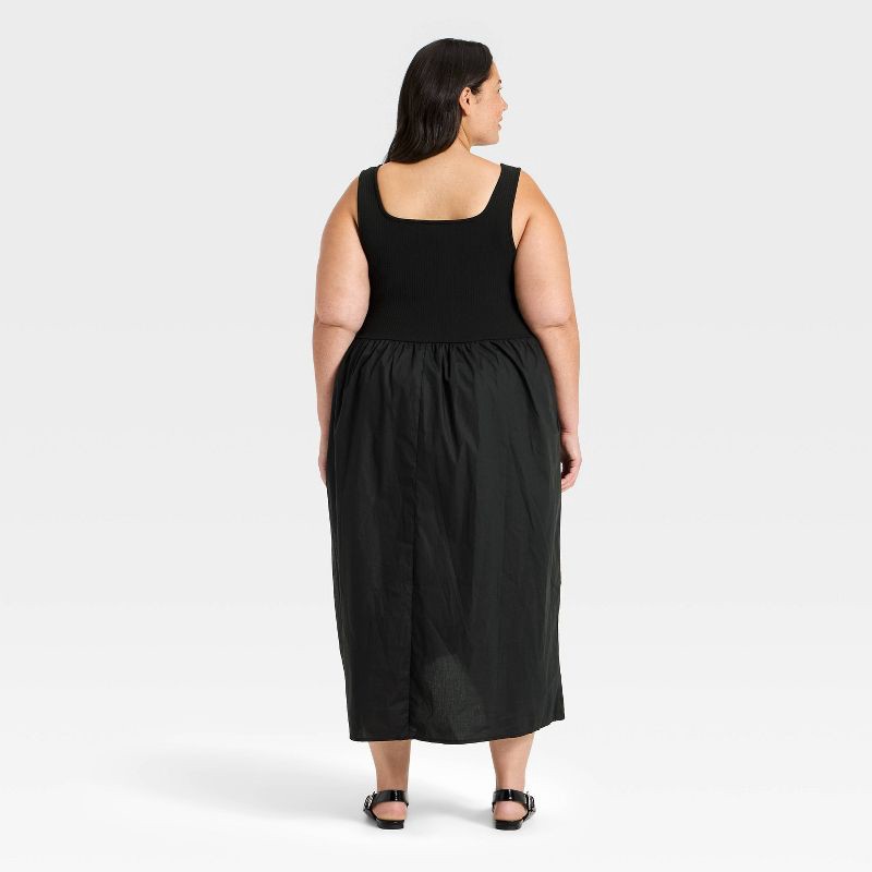 Women's Pullover Knit to Woven Midi Dress - A New Day™ Black XXL