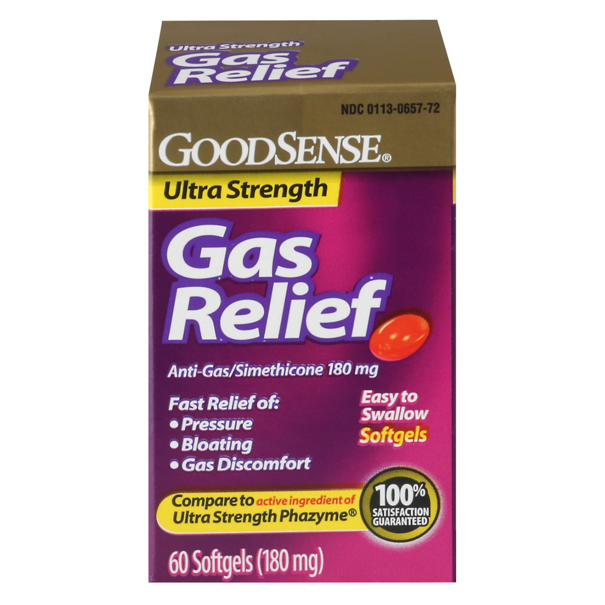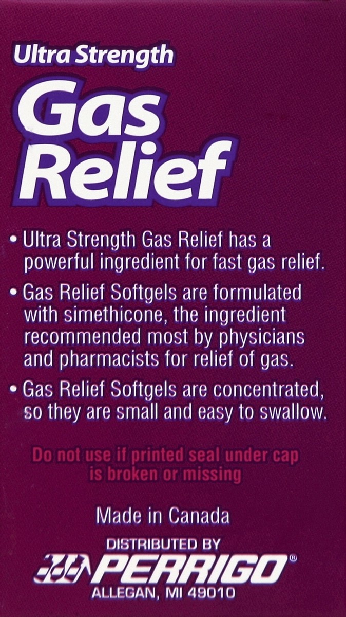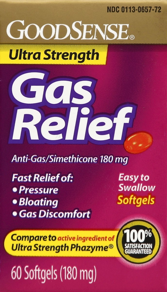 In Each Softgel: Active Ingredients: Simethicone (180 mg), Anti-Gas. Inactive Ingredients: FD&C Red No. 40, FD&C Yellow No. 6, Gelatin, Glycerin.