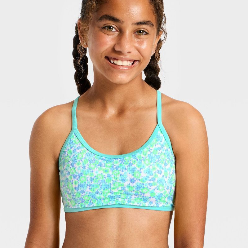 Girls' Vibrant Meadow Bikini Set - art class™ Blue XS