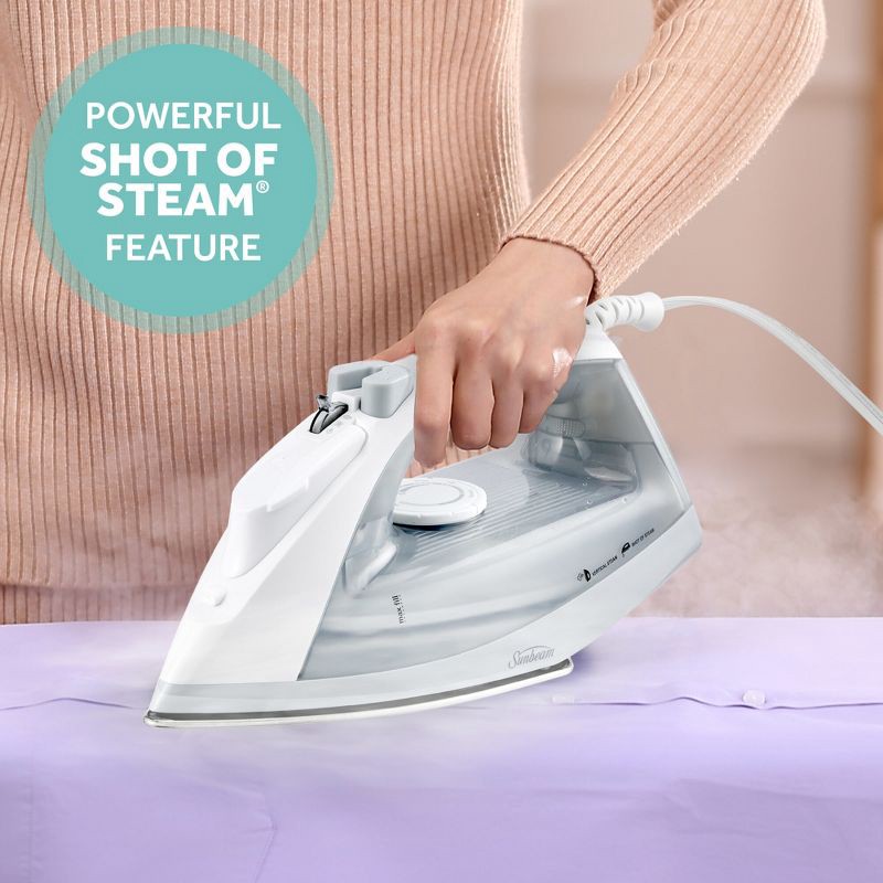 Sunbeam 1200 Watts Compact Steam Iron is efficient and easy to use. Includes a powerful SHOT OF STEAM® feature to provide an extra burst of steam to help smooth out stubborn wrinkles on both flat surf…