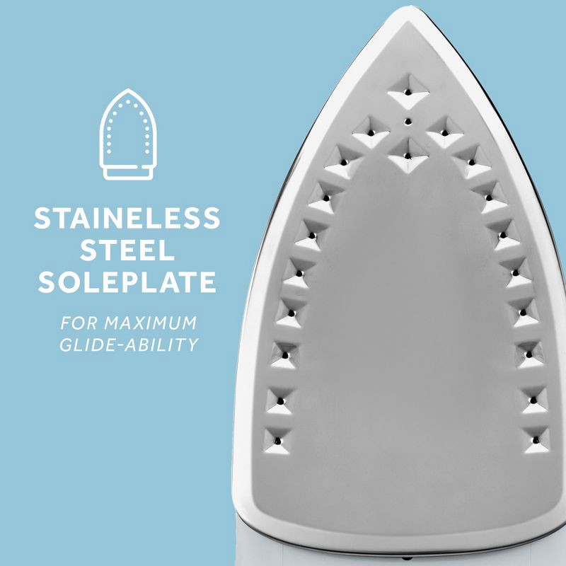 - Stainless steel non-stick soleplate easily glides over fabrics