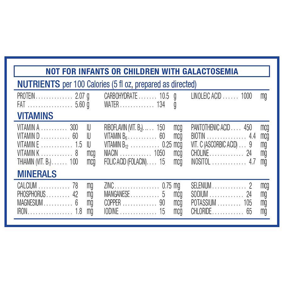Nonfat Milk, Lactose, High Oleic Safflower Oil, Whey Protein Concentrate, Soy Oil, Coconut Oil, Less than 2% of: C, Cohnii Oil, M. Alpina Oil, Short-Chain Fructooligosaccharides, Beta-Carotene, Lutein…